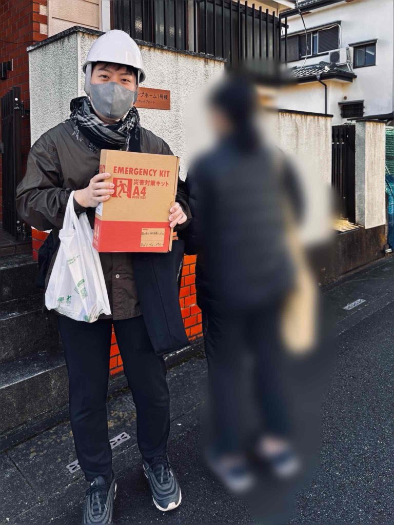 避難用具をしっかりと持って