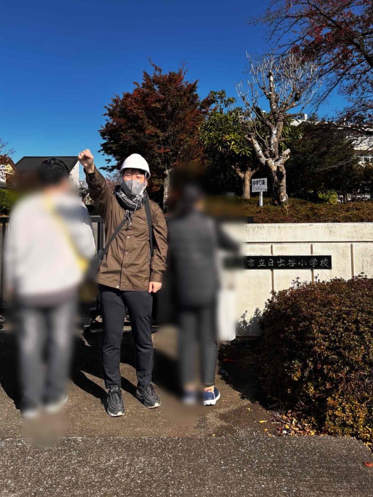 日出谷小学校に到着です。